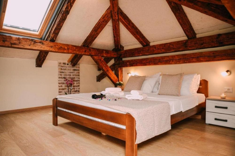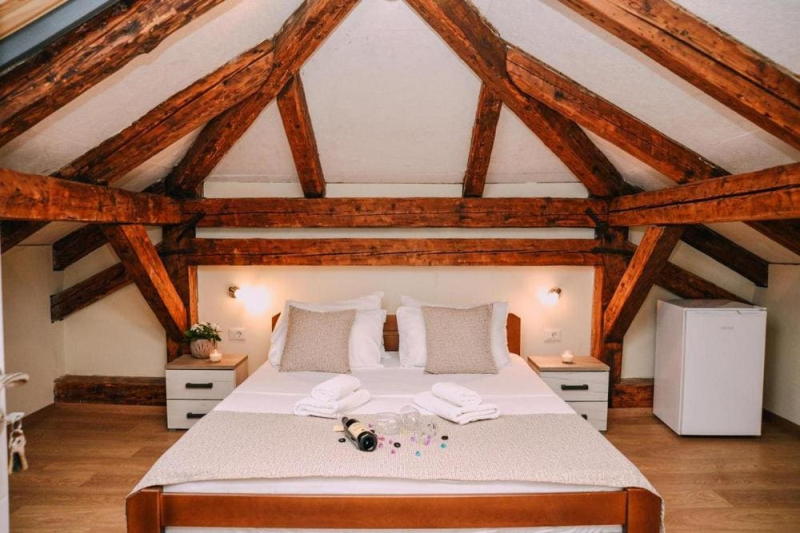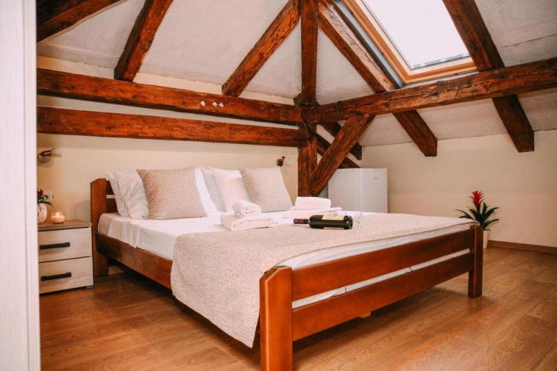 Prostrana dvokrevetna soba u potkrovlju odiše romantikom i udobnošću. Soba ima TV, frižider i klima uređaj. Nalazi se na drugom spratu. U hodniku...
